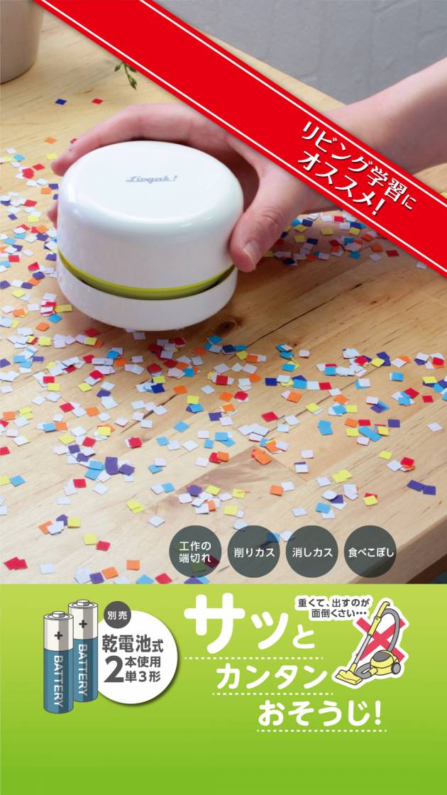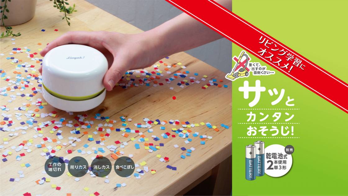 乾電池式でリビング学習にピッタリ!卓上そうじ機スージーの