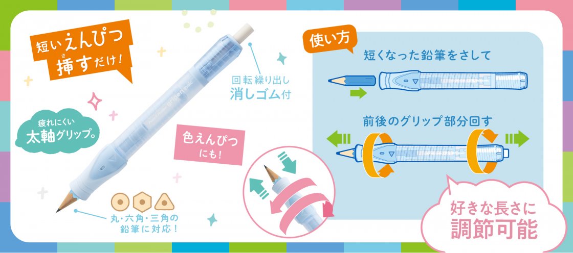 短い鉛筆を挿し込むだけ!簡単装着の補助軸