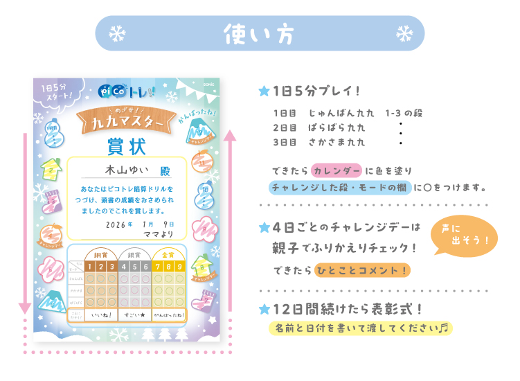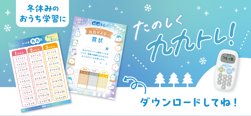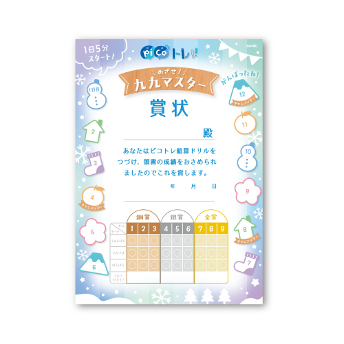 「ピコトレ暗算ドリル(かけ算)」×「やる気UP賞状&かけ算九九表」で