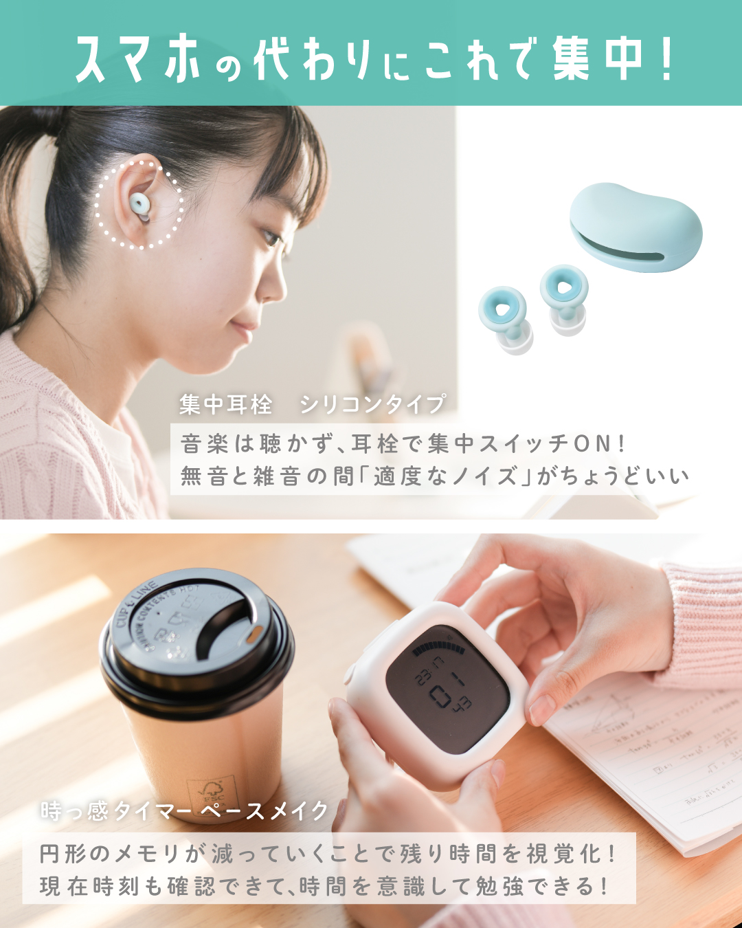 「集中耳栓」と「時っ感タイマー ペースメイク」