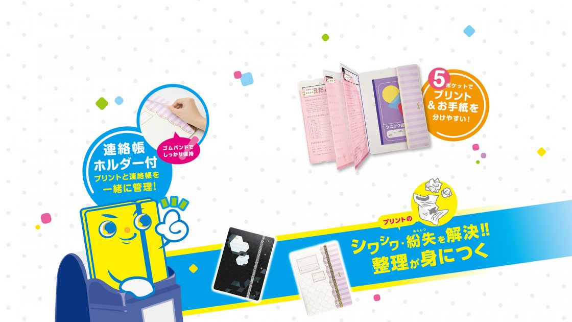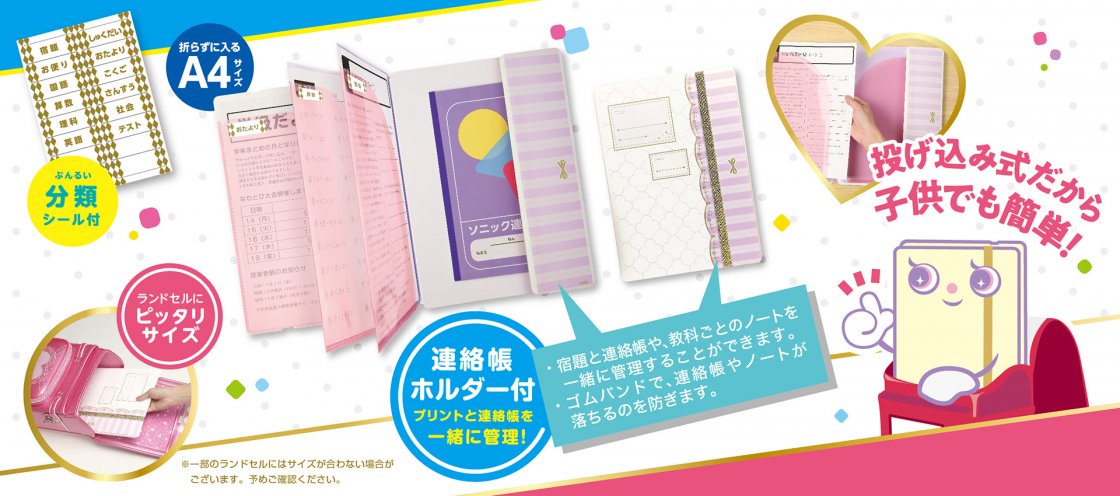 5ポケットで整理整頓。お手紙、宿題、教科ごとのプリントを分けて持ち帰れます。
