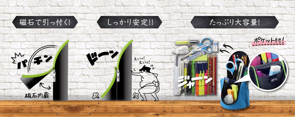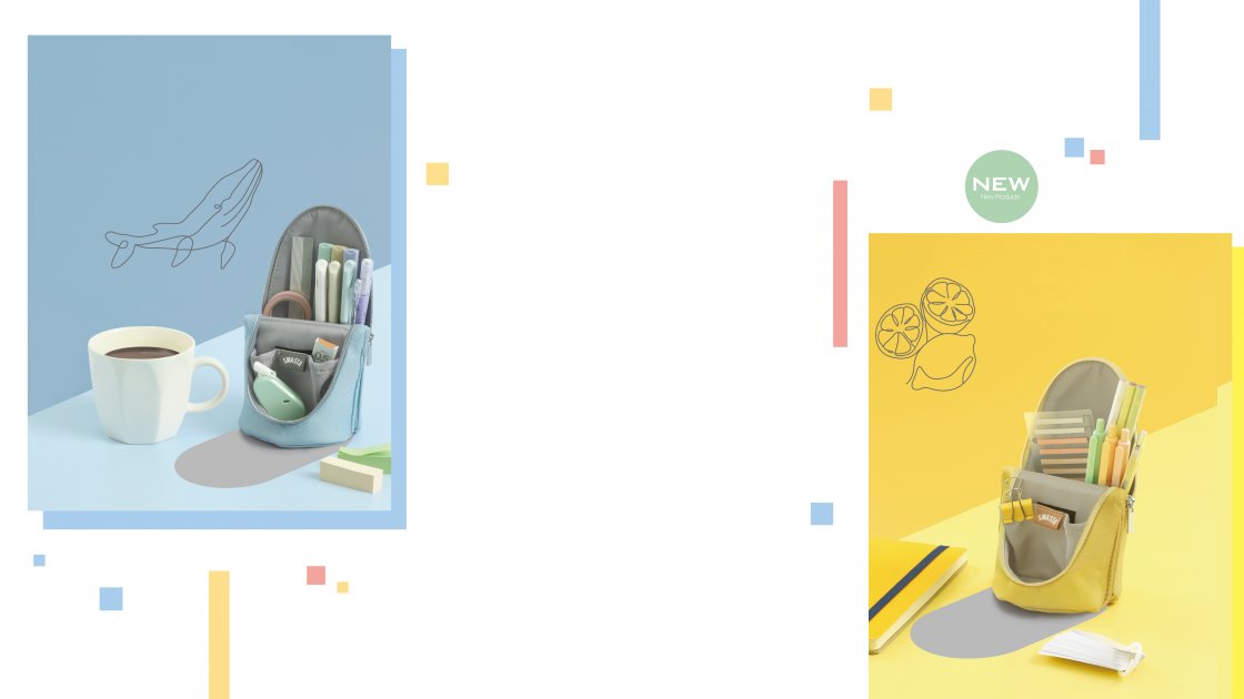 “ほぼワンタッチ”で手間なくかんたん、スマートにスタンドするポーチ。