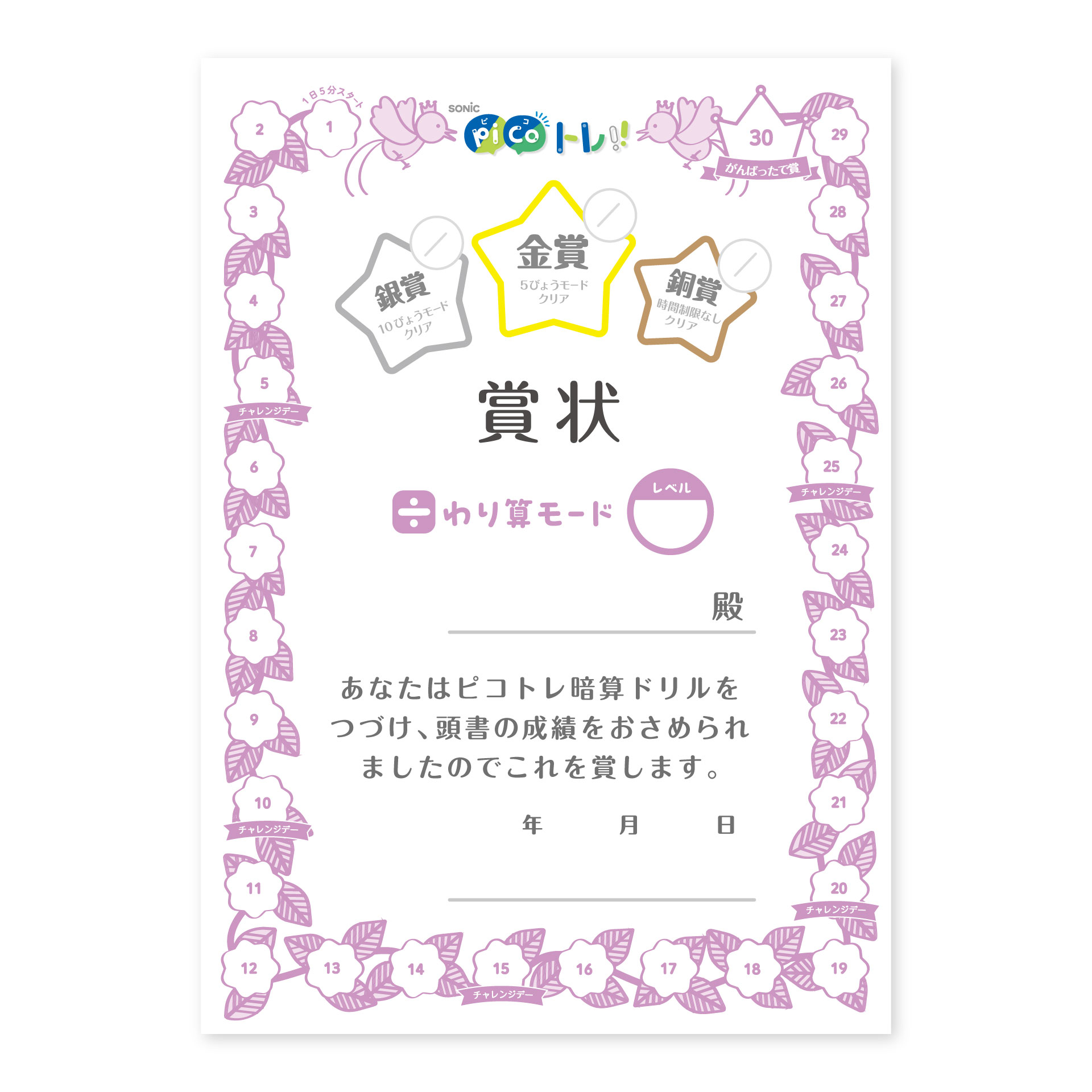 がんばりが見える賞状を使って、1日5分