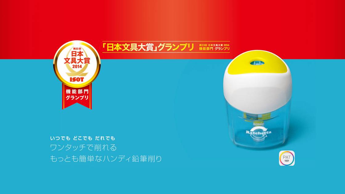 ラチェット機構を採用したハンディ鉛筆削り